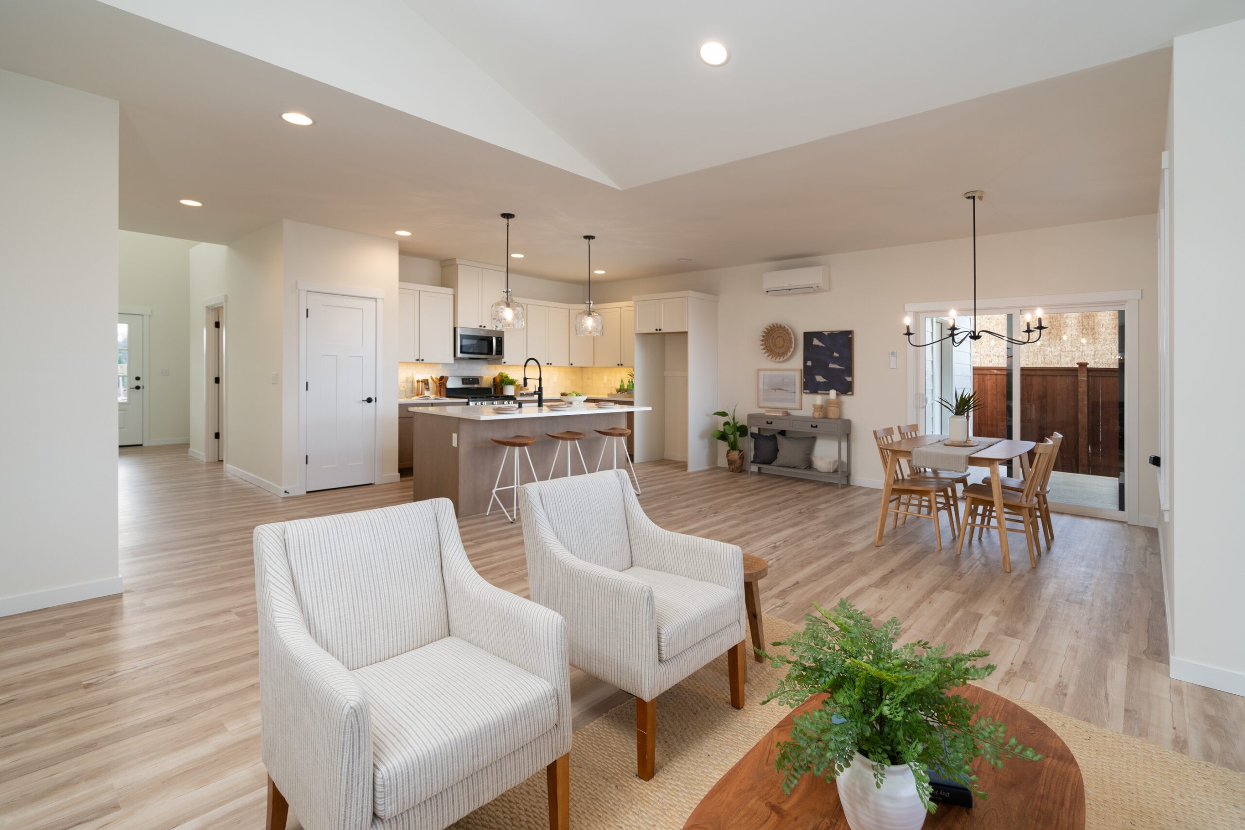 The Georgia is a single-story w/ 3 bedrooms/1.75 baths & a 2 car + tandem garage. The house has good curb appeal complete w/ a front porch. The floor plan is open in the great room, dining room & kitchen. The bedrooms are good sized. There is a covered patio off the rear of the home. There is a lot packed into this home!
